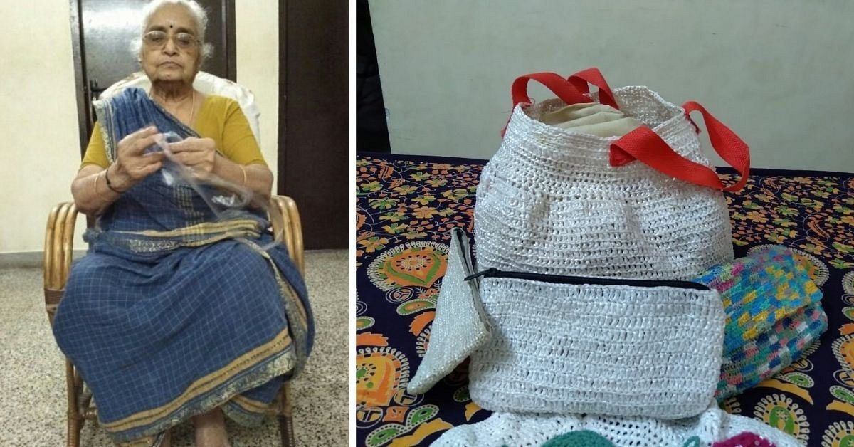 Janaki Viswam, a 92-year-old resident of Chennai, spends her time making various products like table mats, toaster covers and pouches from plastic bags and waste.
