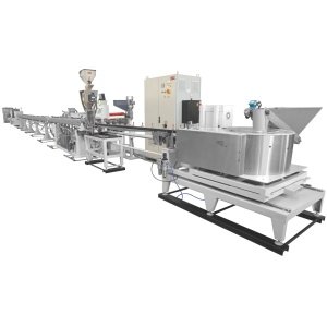 Dripex – Drip Irrigation Pipe Plant extruders are offered with direct coupled motors, manual or hydraulic screen changer, two stainless steel Vacuum sizing tank and cooling system for precise water pressure, high corrosion resistant and long useful life. The 3-axis mechanical adjustment system with lateral position control allows quick precise positioning. The double belt haul-off is provided for optimum pulling force and to prevent ovality in pipe.