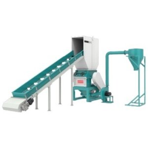 Rolls of waste plastic film and sheet are usually dealt with in two ways. According to size, complete rolls can be fed directly into granulators from the 18″-24″-Series and upwards. A combination of robust components and a constant cutting circle ensures that even thick section of film/sheet are sliced apart easily. Alternatively, and according to cutter-house width, rolls of film/sheet are unwound and drawn continuously into the appropriate granulator by means of a roll-feed system mounted on the granulator in-feed. The superior design of the cutter-house, rotors and knives ensures that even thin film is cut through cleanly and precisely.